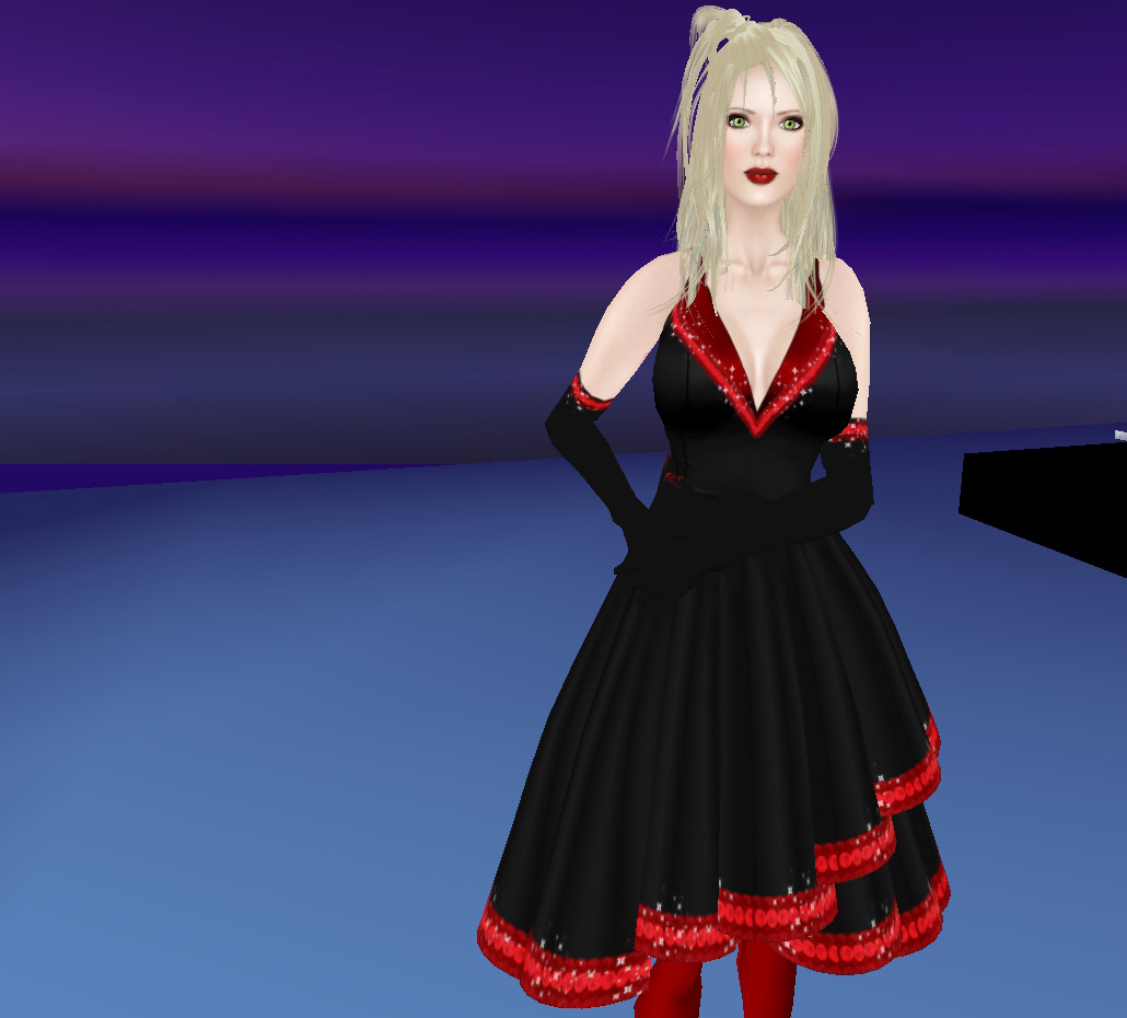 So it turns out no one has any idea whether this is a bustier and a skirt or a dress, everyone agrees Brandie looks amazing in it. It's available at my wife's shop, Virtually Gorgeous.